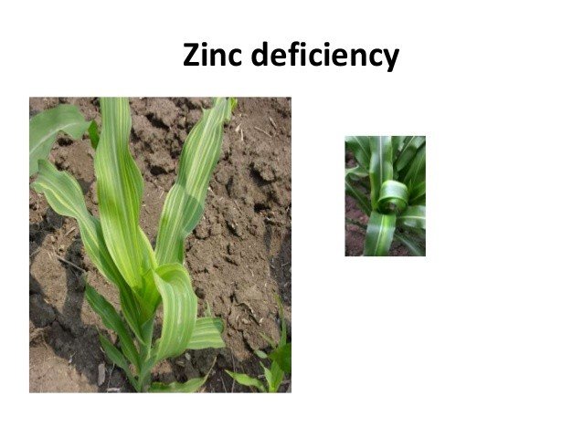 Maize is sensitive to Zinc deficiency. Zinc deficient crop shows stunted growth and develop short inter-nodes. A white (or pale-yellowish) tissue with reddish veins appears on leaf blade. To mitigate it 10 kg/acre ZnSO4.7H2O or 6.5 kg/acre ZnSO4.H2O should be applied at sowing. Apply 10-15 kg S and 0.5 kg B/acre in deficient soils.
