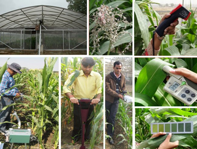 Maize Physiology Lab is well equipped with state-of-art facilities (rain-out-shelter, micro-plots, net house, etc.) along with equipment like portable photosynthesis system (LICOR 6400), UV-visible spectrophotometer, refrigerated centrifuge, SPAD chlorophyll meter, root capacitance meter, Dew Point micro-volt meter, green seeker optical sensor, water and soil analysis kit, rotating water bath, precision electronic balance, pH meter, conductivity meter, infrared thermometer, etc.